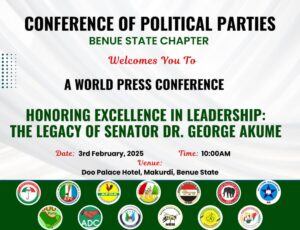 The Conference of Political Parties in Benue State called on the state government to immediately halt political suppression and respect fundamental rights. They also urged the federal government to closely monitor and intervene in Benue’s deteriorating political climate to prevent further threats to democratic governance. The people of Benue were equally encouraged to stand against repressive policies and demand transparency, accountability, and inclusivity from the Alia administration.